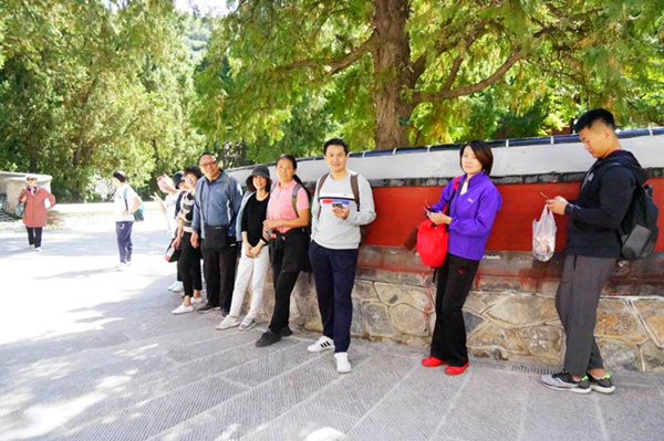 2019年10月8日看漫画 应用体育学系全体工会成员来到了北京香山公园开展游园活动。香山公园位于北京西山东麓,全园占地面积为160余公顷,主峰鬼见愁海拔557米。这次工会组织游园活动,一方面是在国庆长假之后让大家锻炼一下身体,给大家创造一次亲近大自然的机会,另一方面在祖国70华诞之际我们共赴香山革命旧址双清别墅和来青轩参观,让大家重温红色经典、弘扬红色精神。 今天阳光明媚,天气十分晴朗,园区周围群山环绕,郁郁葱葱,一棵棵枫树形状千奇百怪,阳光照在草地上,好像大地上都铺上了一层金色的被子,那一棵棵四季常青的迎客松从容地迎接着来来往往的游客,它们是那样挺拔,那样苍翠。早就听说那里的景色如同一幅会动的画,果然名不虚传。一天的游园活动让老师在放松心身的同时,也感受了美丽祖国的大好河山。 此次爬山活动,我们在感受大自然的同时,加强了彼此之间的交流,大家其乐融融,互相帮助,大大提高了团结协作精神,结束后大家都说非常喜欢本次活动,希望以后工会多组织这样的活动。 应用体育学系 2019年10月8日