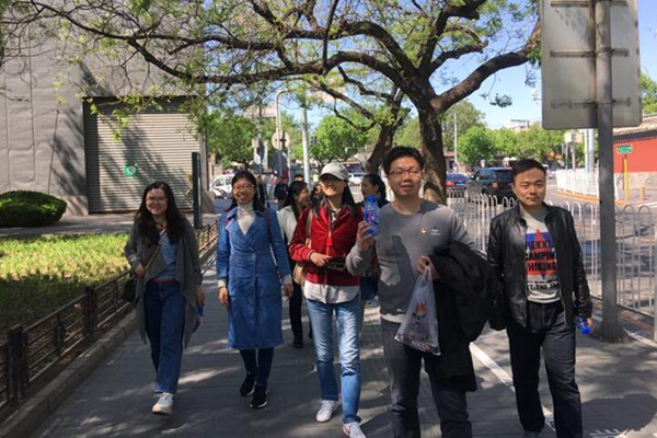 老师们认真参观展厅展品 一百年前,3000余名北京学生群情激愤,举着“外争主权,内除国贼”的旗帜,从红楼出发,沿天安门、东交民巷,一路进至赵家楼,由此掀开了中国现代史上爱国主义运动光辉一页。今日的五四大街,雨后初霁,春风拂柳,老师们带着还不曾平静下来的思绪,离开红楼,追寻先驱者们的足迹,重走五四之路。行走在路上,支部书记陈远亮为大家再次详细介绍了五四运动的经过及重大意义。