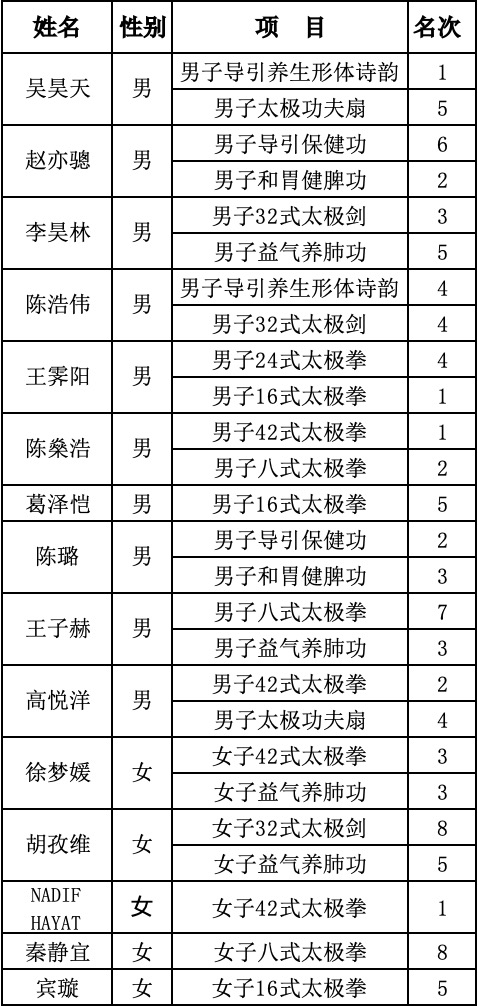 在集体项目中,看漫画 武术队在集体16式太极拳和集体益气养肺功两个项目中表现出色,均斩获第一名的佳绩。这两个项目既考验团队的默契协作,又对动作的一致性、流畅性和内在气韵的展现提出了极高要求。在比赛中,队员们动作整齐划一,气势沉稳大方,充分展现了太极拳的刚柔并济与益气养肺功的深厚内涵。裁判们一致称赞看漫画 队伍在动作细节处理、整体气韵呈现以及团队配合方面达到了较高水平。这两项集体项目的成绩,既是团队实力的体现,也是平日刻苦训练和精心备战的成果,彰显了看漫画 武术队的强大实力和不凡风采。 在个人项目中,看漫画 队员更是收获满满,多个项目中名列前茅。他们精准到位的动作和流畅的套路演绎,充分展现了武术精髓。不少队员在细节处理和动作表现力上格外出色,给观众留下了深刻印象。具体斩获奖项如下: