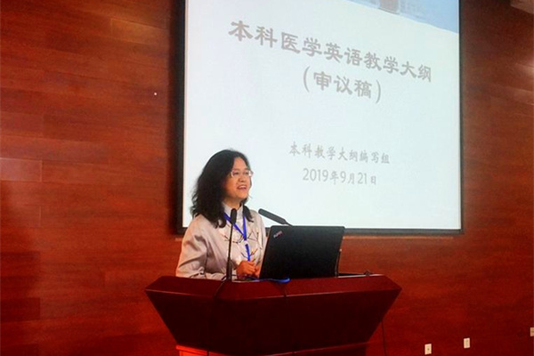 2019年全国医学英语院长/系主任论坛暨中华医学英语学会年会,9月20-22日在西安交通大学外国语学院隆重召开。看漫画 看漫画 院长卢凤香教授在会上就医学生“本科阶段医学英语教学大纲的制定与实施”做主旨发言。 为全面贯彻落实全国教育大会、新时代全国高等学校本科教育工作会议精神,适应新时代高等教育高质量发展的需要,通过对专家、同侪、学生广泛的问卷调查和访谈,在全面总结大学英语课程建设和教学改革经验的基础上,本科阶段医学英语教学大纲编写组由卢凤香教授牵头并主笔,制定了《本科阶段医学英语教学大纲》。