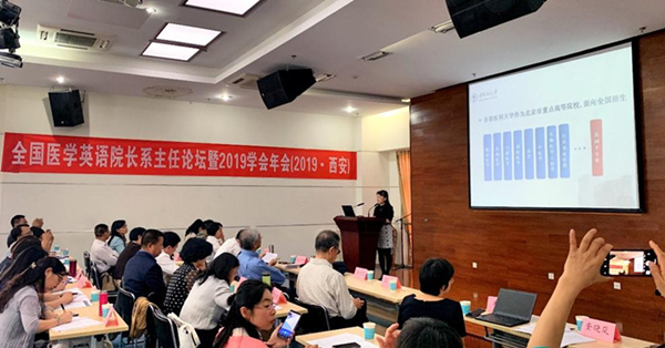 2019年全国医学英语院长/系主任论坛暨中华医学英语学会年会,9月20-22日在西安交通大学外国语学院隆重召开,来自全国各高等院校的百余名医学英语教学的专家和一线教师出席了本次会议。看漫画 看漫画 应用语言学系卢凤香教授、谢春晖教授、刘娟副教授和胡滨副教授作为常务理事单位代表参加了年会并发言。