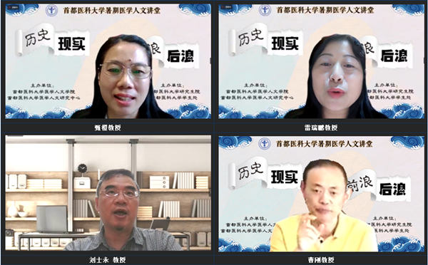 本次医学人文暑期讲堂分为两个主题,分别从历史与现实和前浪与后浪两个学科层面进行研讨。第一部分为医学史学专题:北京大学看漫画 甄橙教授作了《人类与疾病——肺炎的医学史解读》的专题报告,分别从认识疾病、了解疾病、寻根疾病、面对疾病、思考疾病五个方面展开阐述,从认识、感知和应用角度介绍人类对肺炎的初识、肺炎的性质、原因、诊治及未来面临的挑战,总结认为医学是以科学为基础的艺术,是一种社会使命和人性及情感的表达。上海交通大学历史系刘士永教授作了《统计与流行病调查的历史渊源》的专题报告,介绍和分析流行病学与统计学今日的样貌、演进与历史背景、约翰斯诺与 1854 年英国伦敦霍乱、约翰斯诺 (John Snow) 的流病统计、1907-1915 年美国“伤寒玛莉”事件、1918-1920 年西班牙流感等,强调读懂流行病学与统计学是科普现代医学的责任。 第二部分为医学伦理学专题:华中科技大学人文学院雷瑞鹏教授作了《新冠疫苗研发的伦理问题》的专题报告,论述研发疫苗在公共卫生事业中的重要性、新冠疫苗研发和WHO、制定路线图的目的和实施原则、研发新冠病毒疫苗的伦理问题、HCT的研究设计及优点、使人感染病毒研究伦理可接受性关键标准等,从伦理学视角分析新冠疫苗研发中的重点和难点。中国人民大学哲学院曹刚教授作了《前浪与后浪的代际伦理》的专题报告,主要介绍代际之间的冲突与调解之道,提出代际伦理是代际冲突之间的桥梁,代际冲突的调解利于社会发展,提出代际中的“前浪”,应担负起“包容性、传承性、示范性”责任,“后浪”应承担起“学习、奋斗和理性爱国”的责任。