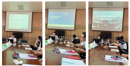 6月30日,应用体育学学系青年教师规范化培训汇报在体育馆会议室召开。会议由学系主任高玲娣副教授主持,学系全体教师参加了会议。新入职教师吴昊天、王新磊、青年教师赵雨婷分别以《体育课程教学常规及教学事故的预防》、《体育教学中如何贯穿素质训练,提高学生身体素质》为题进行新教师规范化培训汇报。