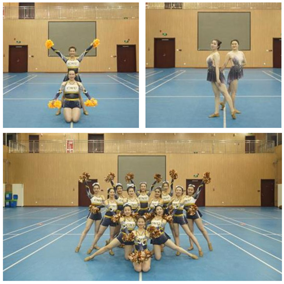 左上:双人花球自选(冠军)--苑琳 明筠秋;右上:双人爵士自选(第五名)--华梓煜 刘思媞 下:花球校园啦啦操示范套路第三名 应用体育学学系 2021年7月13日 |
