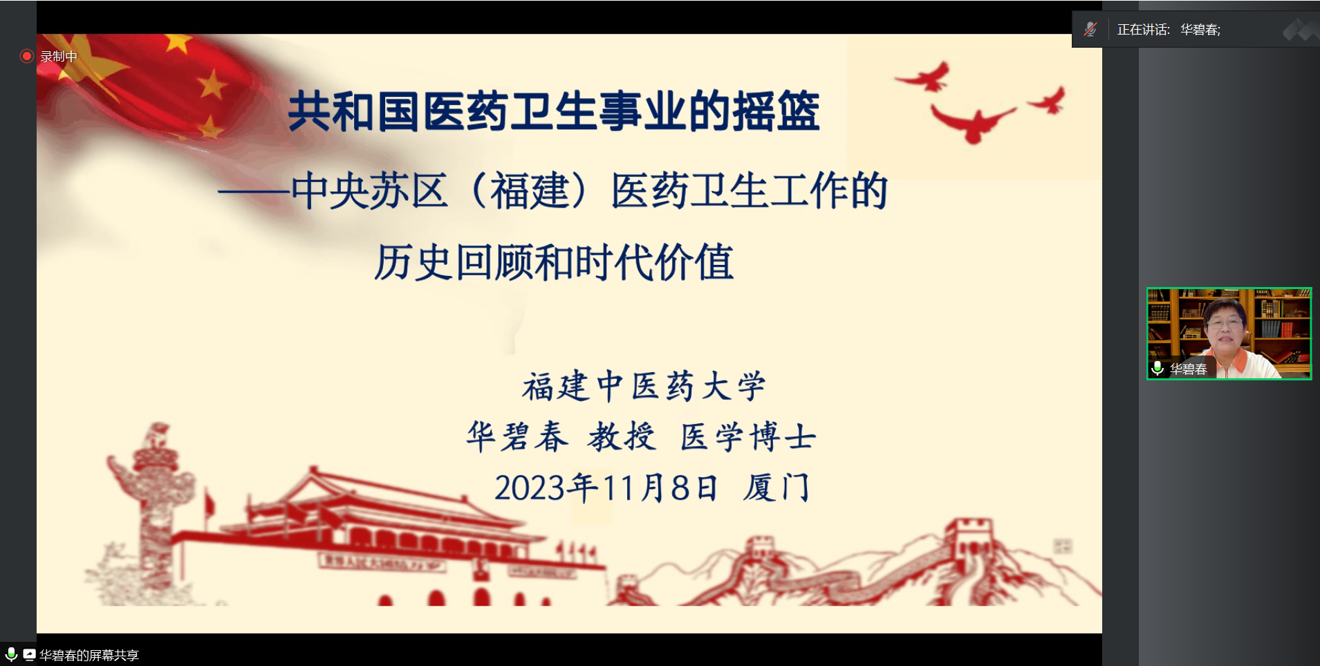2023年11月8日晚,看漫画 组织全体党员参加了由医学伦理学与医学史学学系党支部承办的党史专题讲座。本次活动特邀请福建中医药大学华碧春教授在线讲授了主题为“共和国医药卫生事业的摇篮——中共苏区(福建)医药卫生工作的历史回顾和时代价值”的讲座。本次讲座由医学伦理学与医学史学学系党支部书记彭迎春副教授主持。 讲座由两部分内容组成。第一部分,华教授对中央苏区(福建)医药卫生工作的历史回顾和时代价值进行了分享,利用各类翔实的史料,图文并茂地分享了包括中央苏区(福建)医药卫生组织机构的建立与工作举措、中央苏区(福建)红军医院的建立、中央苏区(福建)的中医药以及中央苏区(福建)的医药卫生人才在内四个方面的内容。华老师表示,中央苏区(福建)医药卫生史是中共党史、中国人民解放军军史和中国医学史的重要组成部分,依据习近平主席的指示,我们应该“把红色资源利用好,把红色传统发扬好,把红色基因传承好”,重视和广泛应用中医药。讲座的第二部分,华教授将自己从事中央苏区(福建)医药卫生史料研究多年来的调研经验以及体会跟参会成员进行分享。她向我们展示了多年来保留完整的每一次访谈记录,同时也分享了获取史料来源的经验,认为史料的搜集不能只是对所研究主题进行单一搜集,并举例中医药卫生的史料搜集,要从政治、经济、文化、军事等各类不同领域对医药卫生相关信息进行挖取和搜集。在讲座最后的自由提问交流环节,华教授针对大家所提出的问题一一予以耐心解答。 华教授聚焦于医药卫生工作的历史回顾及其对于时代价值的深入分析,既有史料的挖掘分析,也有北上南下、田间地头的实地调研,同时还有大量文物旧址的原图呈现。这一系列的研究方法及孜孜不倦的钻研精神,值得从事医学人文社会学科的研究者们去学习探究。也让全体党员们更深入地了解了党的奋斗历史和光荣传统,汲取力量和智慧,在新时代为党和人民做出自己的一份努力。