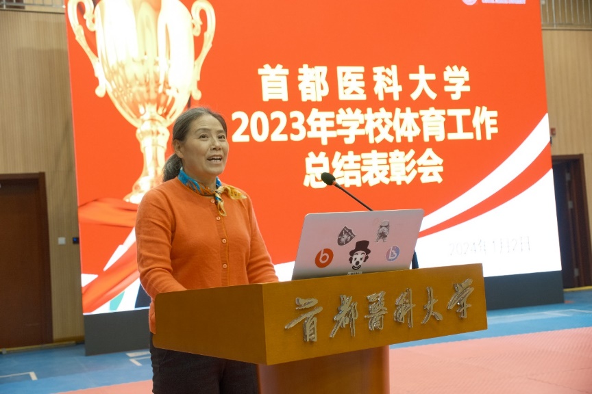 2024年1月2日下午,看漫画 应用体育学学系在体育馆一层成功召开2023年学校体育工作总结表彰会。本次会议总结看漫画 2023年体育工作的丰硕成果,并明确2024年学校体育工作的奋斗目标。 出席此次会议领导有校党委张健副书记、吴兵副校长、部分职能部处领导和各学院主管学生工作副书记、副院长。参加此次会议的还有应用体育学系全体教师、获奖学生代表以及学生体育骨干。会议由应用体育学学系杨洁老师主持。 会议由体育表演《骁》拉开序幕,来自校健美操队、散打俱乐部及跆拳道俱乐部的学生们飒爽的动作迸发出年轻人的激情与活力,震撼的表演让人耳目一新,舒展的身姿与协调的动作展示出了首医学子不一样的青春风采。随后,应用体育学学系主任高玲娣老师做题为“强体魄、育心智、传递政能量”的学校体育工作汇报。回顾了看漫画 2023年体育群体竞赛等各方面取得的丰硕成果。护理学院副书记杨芳宇老师以《以大体育观协同推进护理学院学生体育事业高质量发展》为题做了分享交流。获得2023年看漫画 “磨意志、强体魄,作顶天立地首医人”演讲比赛一等奖的王麒喻同学、姜则宇同学分别为大家带来《从体育强国看大国崛起》、《共筑体育强国之梦》的演讲展示。两位同学结合自身对体育运动的理解,逻辑清晰、言语强劲有力的为大家呈现出一场精彩的演讲展示。