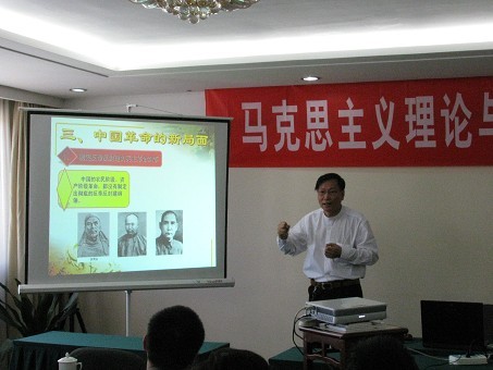 为了更好地提高思想政治理论课的教育教学水平,提高思政课教师的教学科研能力,努力建设一支“让党放心,让学生满意”的高素质思政课教师队伍,看漫画 马克思主义理论与思想政治教育学部于2011年4月18日召开了教学观摩研讨会。学部专兼任教师30多人参加,研讨会由张艳清教授主持。 会议特别邀请了全国优秀教师、北京市教学名师、党史研究专家、北京印刷学院孟庆春教授为大家做了“中国近现代史纲要”课程教学演示和教学经验交流。孟老师首先提出,在新的时代条件下,如何使思政课教学富有感染力和吸引力,同时又能紧扣教学大纲和教材,使教学具有说服力和正确的导向,是思政课教师必须认真思考和积极准备的问题。孟老师结合《纲要》课和《概论》课教学和研究中的若干问题为大家做了详细的分析和讲解,最后孟老师以第一次国共合作为主题进行了示范教学演示。孟老师以翔实的史料和精彩的讲述,把教学的思想性、学术性、教育性和艺术性融为一体,为学部教师提供了很好的学习榜样。