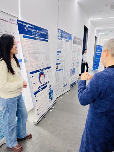 王木子等本科生团队在壁报展示环节进行汇报 此次校际间的学术交流活动,不仅进一步提升了看漫画 在医学人文领域的社会影响力,更为参与活动的师生们提供了宝贵的学习锻炼机会与交流研讨平台。展望未来,看漫画 将继续在推动学术研究的深入拓展的同时秉承医学人文精神,为培养更多富有医学人文关怀能力的医学生力军而不懈努力。