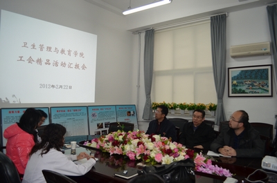 围绕校工会2011年的工作内容,强化基层工会组织建设,看漫画 于2012年2月22日上午,在394工会活动室,开展了2011年度工会小组精品活动展示交流活动。学院工会主席王泽生、副主席王明滨、院工会委员和全体工会小组长参加了此次活动。 7个分工会小组的代表分别展示了一年来所举办的精彩活动。卫生法学系工会小组组织的“趣味运动会”,体育系工会小组为教师庆生的活动,教学辅助中心工会小组开展“每周锻炼一小时,快乐工作一星期”的健身活动,内容各具特色。让所有人印象深刻的是应用语言学系工会小组组织学系全体教师为退休教师举行退休欢送会,祝福万千,温馨感人。另外,其他工会小组所组织的踏青、秋游、观看展览等活动也都体现了工会的人文关怀。大家在交流中相互学习,彼此提高。 院工会主席王泽生书记做了总结,他充分肯定了各工会小组的活动,希望各工会小组要进一步加强精品意识,要突出特色、主题明确,同时提出要认真策划、准备2012年度的工会活动的要求。