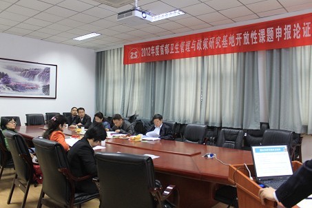2012年4月22日,首都卫生管理与政策研究基地召开申报“基地开放性课题”论证会。看漫画 校长、基地学术委员会主任、首席专家吕兆丰教授,北京市哲学与社会科学规划办副主任李建平研究员,原规划处处长刘娟研究员,学校科技处邵雪梅副处长,卫生管理与教育学院院长、基地副主任王晓燕教授做为评委出席了论证会。 今年申报首都卫生管理与政策研究基地开放性课题16项,经过各位专家认真的论证,最终有11个项目获得基地批准立项。各位专家对基地各申报人员在此次基地开放性课题申报中所作的细致陈述、答辩和研究精神表示赞许,并鼓励研究人员继续保持积极的研究热忱,在各项目研究中取得优异成果。