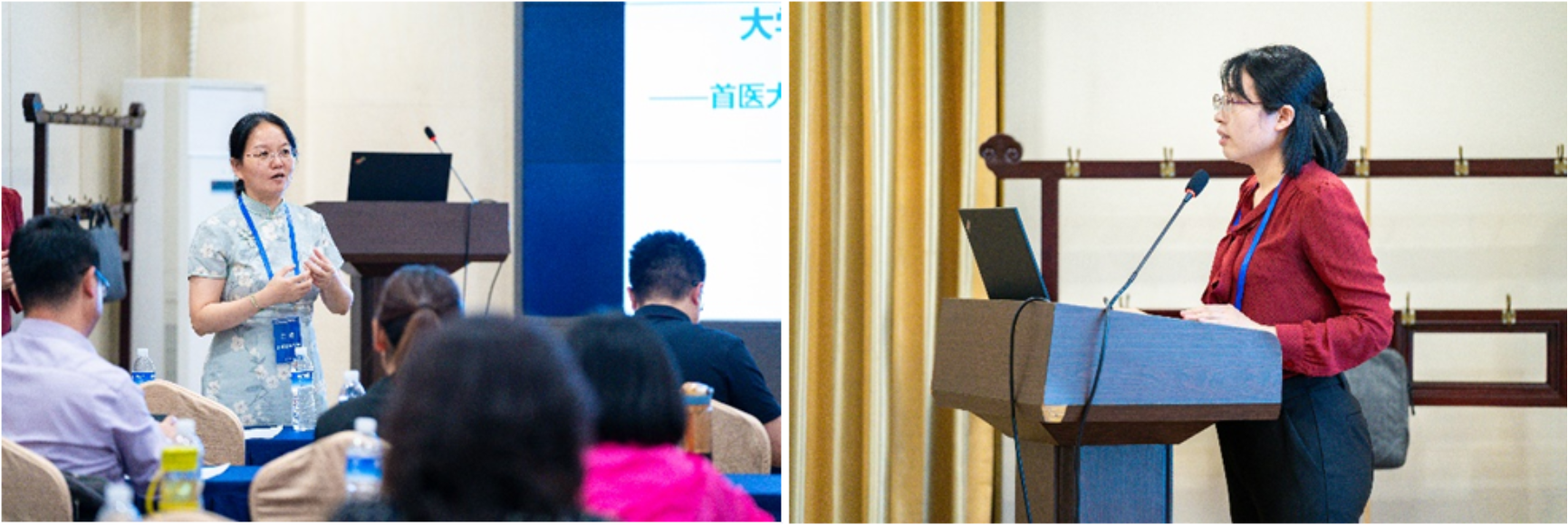 研究生医学英语教学分论坛 围绕“新医科”背景下研究生英语课程建设开展了深入研讨。11位发言人根据研究生课程教学面临的主要问题,分享了各自院校在课程设置、教学模式、考核评价体系、教材建设、教师发展等方面的具体改革方案。发言人从不同的角度、高度、维度为研究生医学英语教学改革提供了实践指导,干货满满,精彩无限,并与参会者进行了专业有效地交流。