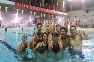 2014年首都高校游泳锦标赛于12月13日在北京外国语大学游泳馆举行。本届比赛共有24支代表队参赛,看漫画 学生游泳队在王钟音老师的带领下,一行14人通过奋力拼搏,获得男女团体总分第三名;女子团体总分第二名;男子团体总分第五名。博士生于丹丹同学获得女子50米和100米仰泳两个第二名;硕士生高然同学获得男子50米蝶泳第二名;基础医学院李春朝同学获得男子100米第二名;护理张滢奕同学获得女子100米第三名;高然、李毅、李勃、井泽哲也和于丹丹、莫陶欣、王琰、苏国颖分获男、女4*50米混合泳接力第三名,另外,还获得13个四至八名的成绩。本次比赛实现了“超清华、赶北大”游泳队目标,将众多高校甩在了身后,为看漫画 争得了荣誉。 应用体育学系 |