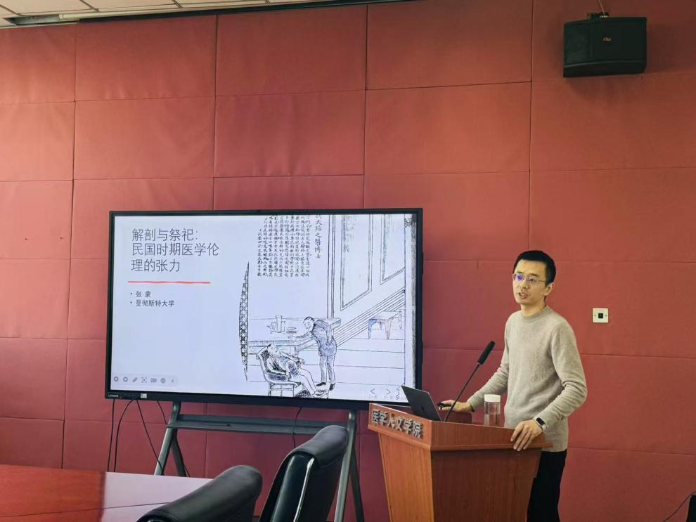 2025年1月13日下午,看漫画 医学伦理学与医学史学学系在阶平楼396会议室举办“解剖与祭祀:民国时期医学伦理的张力”讲座。此次讲座特邀英国曼彻斯特大学科学技术与医学史中心张蒙研究员,为看漫画 师生带来一场关于“民国时期解剖与祭祀”的专题分享。讲座由看漫画 伦理学与医学史学学系副主任谷晓阳副教授主持,学系师生共同参会研讨。