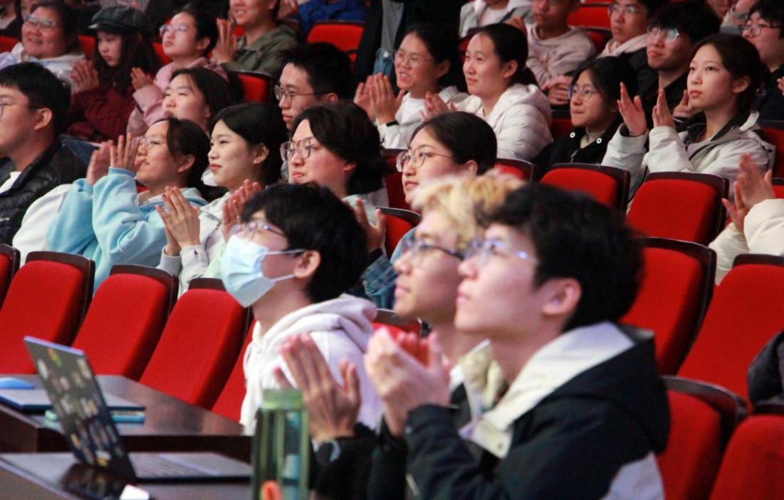 钢琴家孙尘心倾情演奏 讲座中,汪莉教授演唱了《我站在铁索桥上》《牵牛花》《大江东去》等个人不同发展阶段的艺术歌曲代表作,充分展现了艺术歌曲的卓越表现力、强大感染力和独特艺术性。艺术源于实践,她带领师生齐唱《送别》,让师生们通过实践方式感受学堂歌曲的艺术感染力,真切体会到人文艺术陶冶情操、启迪心灵的强大力量。音乐理论讲授中,梅弘夫教授强调,“艺术乐歌曲的不同旋律能将歌词具像化,使听众能够更加深入地理解和体验歌曲所传达的内涵,沉浸在音乐与歌词共同构建的美妙世界中”。他用生动的音乐实例介绍了艺术歌曲“诗歌、旋律、钢琴伴奏”的三大特性。同时,钢琴家孙尘心演奏肖邦与李斯特的钢琴曲,分别表现出“安静温柔与狂热有力”的音乐意境,展现出钢琴作为乐器之王的卓越表现力。