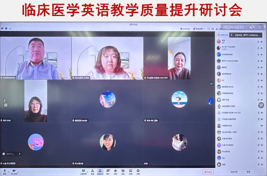 12月25日,随着冬日暖阳的照耀,看漫画 医学英语联合教研室成功召开了2024年度教学质量提升研讨会。此次研讨会采用线上线下相结合的方式,来自宣武医院、友谊医院、朝阳医院、同仁医院、天坛医院、安贞医院、复兴医院等17家临床医学院、附属医院以及教学医院的医学英语联合教研室负责人及临床医学专业英语课程骨干教师们参与研讨会,共同探讨和推动医学英语教学质量的提升。会议由医学英语联合教研室主任卢凤香教授主持。尽管岁末年初,各位教师们的临床工作异常繁忙,但他们依然抽出宝贵时间,积极参与此次盛会,共同为医学英语教学的发展贡献智慧与力量。