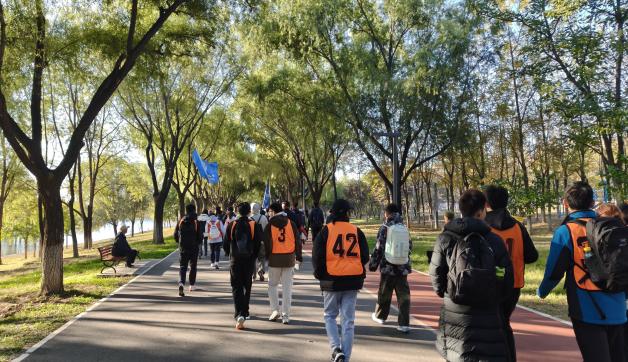本次比赛并非单一的徒步比拼,而是融合了趣味与竞技的综合赛事,共设置答题、徒步、横扫千军、跳大绳四个项目,既考验团队的智力、耐力与协作,也充满运动的欢乐与活力。作为主场般的昌平白浮泉公园,成为学子们释放激情的舞台——答题环节中大家争分夺秒,绞尽脑汁地运用自己的智慧快速准确的完成答卷;徒步环节中,队员们迎着微风前行,步伐轻快却不失坚定,沿途的美景与同伴的鼓励交织,让这段征程既轻松愉快又充满力量;“横扫千军”项目里,大家默契配合,每一次策略调整都凝聚着团队的智慧;而跳大绳项目更是成为全场焦点,队员们节奏统一、动作连贯,全程零卡断,绳影翻飞间展现出极致的协作力,赢得现场阵阵喝彩,也为团队总分奠定了坚实基础。