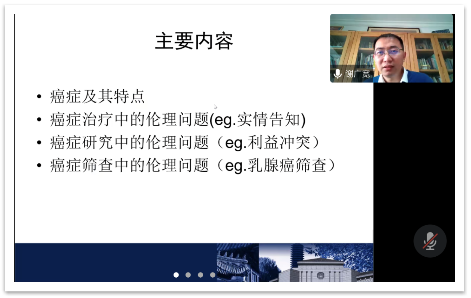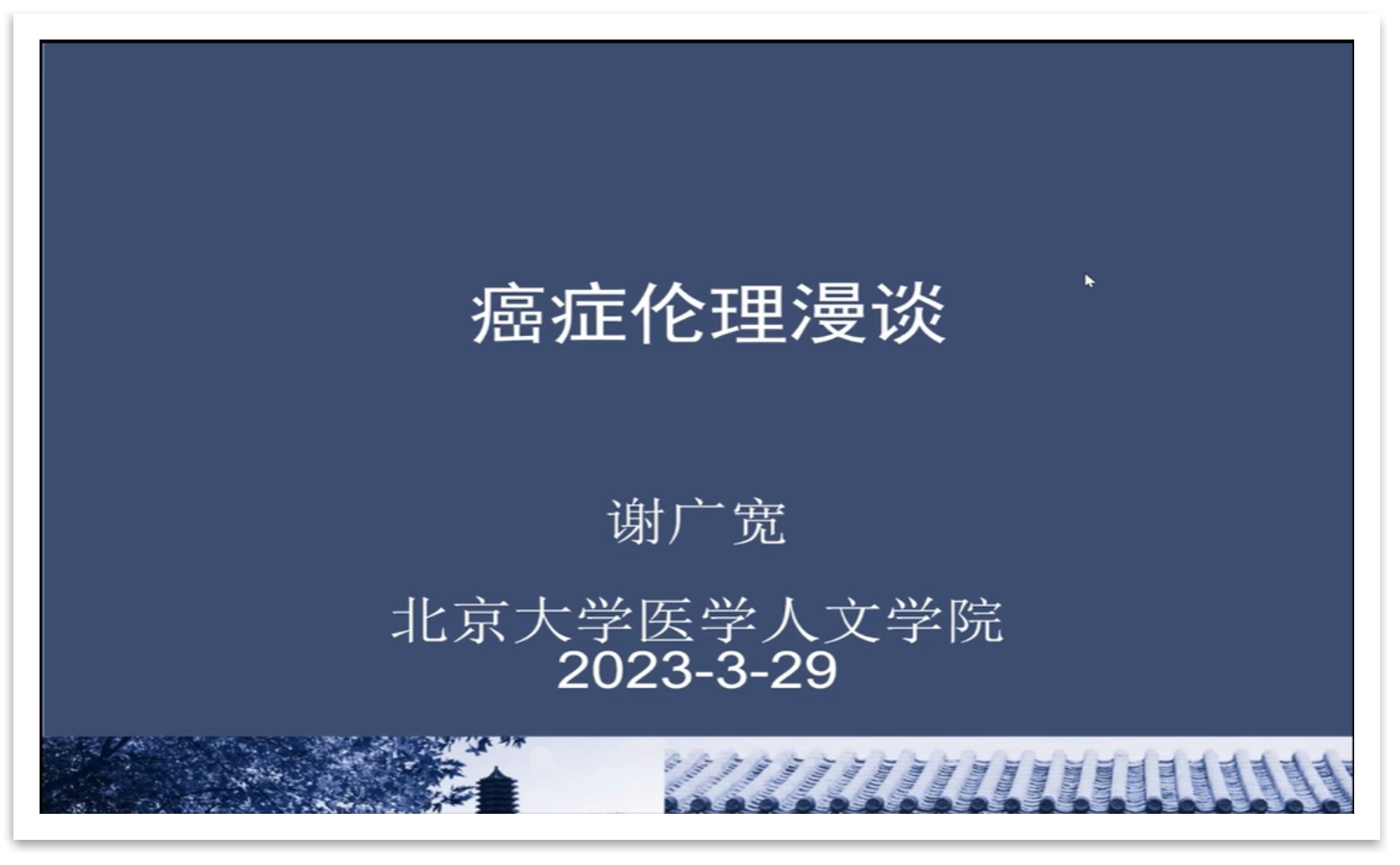 为活跃学术思想,加强学术交流,2023年3月29日上午9点,看漫画 医学伦理学与医学史学学系邀请北京大学看漫画 谢广宽老师为师生带来关于“癌症伦理漫谈”的线上学术分享,此次分享由学系主任梁立智副教授主持,来自临床、法学及伦理相关专业老师和学生们参加了此次培训与交流。 谢广宽老师主要从癌症的特点、癌症治疗中的伦理问题、癌症研究中的伦理问题和癌症筛查中的伦理问题四个方面为大家进行了深入浅出地讲解。首先,谢老师对癌症与肿瘤的概念进行区别,对癌症的发病率及其影响因素进行介绍,同时对癌症的特点进行总结:无限增生;治疗困难;治疗费用昂贵;预后往往不好;使大家对癌症有了一定的了解。紧接着以实际出发,对癌症治疗与实情告知问题进行讲述,从实证文章、相关案例、调查结果进行分析,对患病的实情告知相关争议进行聚焦讨论;从医学伦理学的尊重自主原则、不伤害原则、有利原则、公正原则出发,介绍了告知方式及沟通技巧,同时引用扁鹊见蔡桓公、华佗与曹操的故事,得出中国历史并不缺乏实情告知的传统。随后,就癌症临床研究与利益冲突进行举例讲解,强调了告知方式与沟通技巧是同等重要的。讲座的内容生动形象且贴近现实,使大家获益良多,同时也启发大家进行了积极的伦理思考。