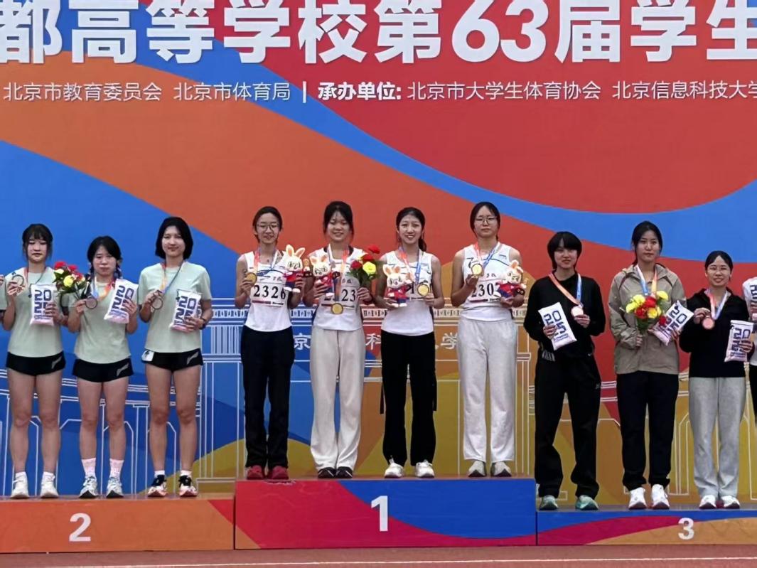 径赛项目中,曲竞雯同学在5月15日的乙组100米比赛中以11.98秒获得第二名,5月17日的乙组200米比赛中以22.44秒再次摘得银牌;席思畅同学在5月16日的乙组100米栏比赛中以15.57秒获得第二名,5月17日的乙组400米栏比赛中以1分16秒的成绩勇夺冠军;唐希宣同学在同日的乙组400米栏比赛中获得第六名(1分22.90秒),展现了首医学子的拼搏精神,刷新了个人的最好记录。 在长距离项目中,何璇、黄秋茹、杨博文三位同学在乙组10000米比赛中分别获得第八名(46分12.18秒)、第七名(45分52秒)和第六名(44分17.9秒),她们用坚持和耐力诠释了田径运动的魅力。