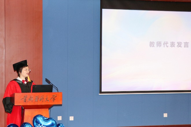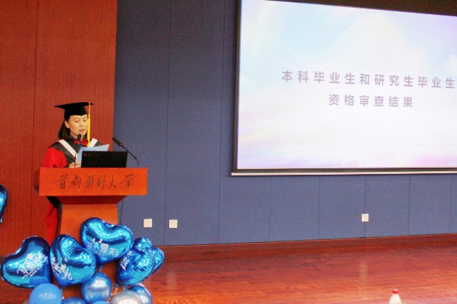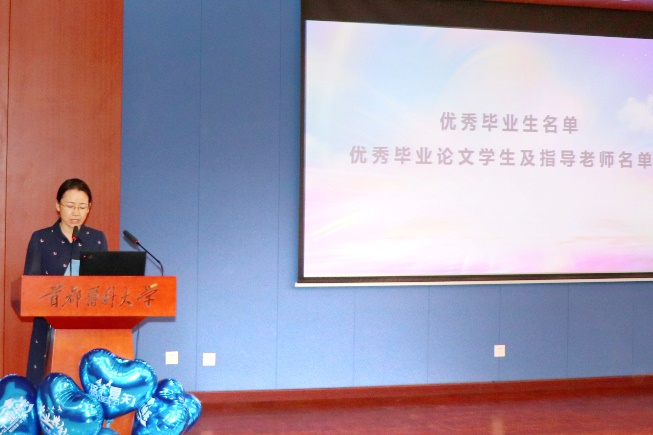 副院长张曼华教授发言 学院副院长张曼华教授宣布了学院学位委员会学位资格审核结果和学院优秀毕业生名单。共有11名毕业生顺利获得硕士学位、20名毕业生顺利获得学士学位。