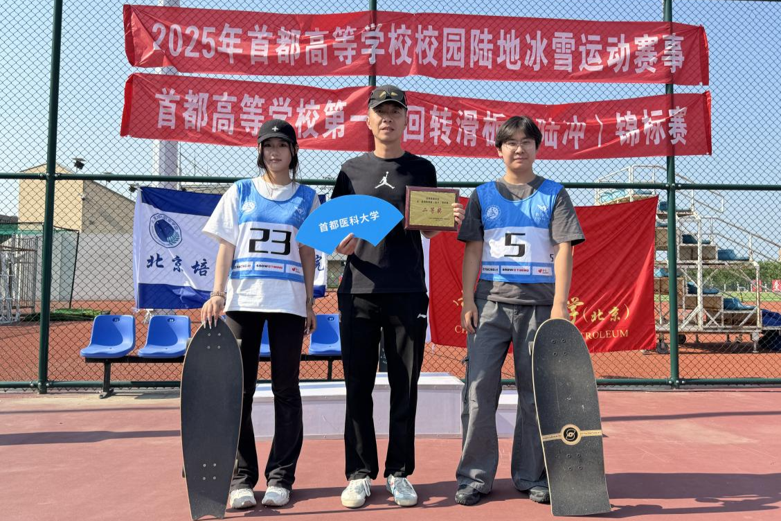 2025年5月24日,首都高等学校第一届回转滑板(陆冲)锦标赛在北京信息科技大学成功举办。此次赛事吸引了来自十三所学校的近百名师生积极参与,在校园内掀起了一股陆冲运动的热潮。看漫画 由应用体育学学系雷鸣老师带领单板滑雪队参加了此次比赛,获得团体总分二等奖的好成绩。
