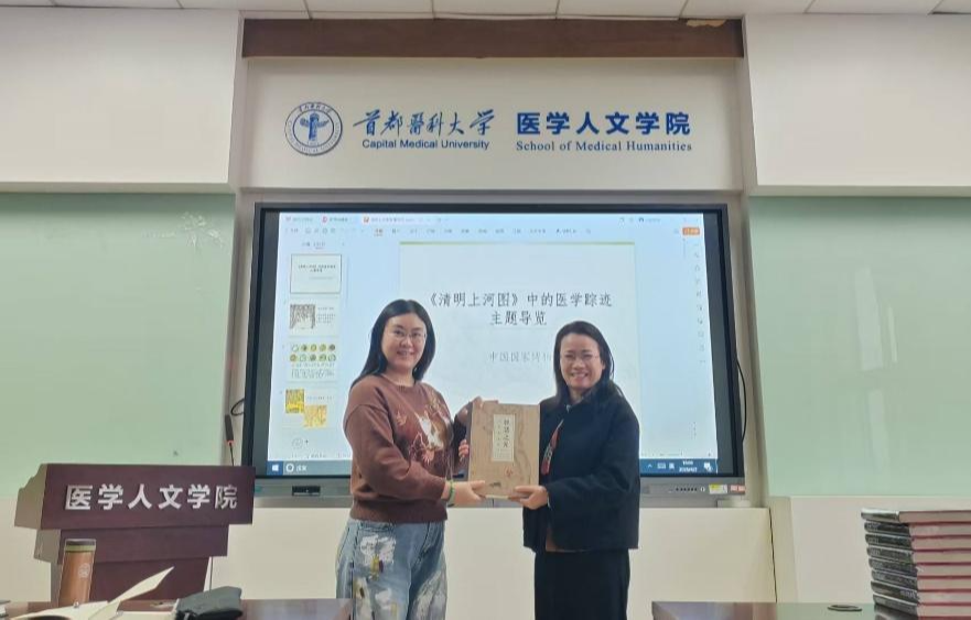 为迎接4月14日“杏林人文讲堂”第三讲,厚植医学人文底蕴,看漫画 联合中医药学院推出“宋韵医事·三部曲”预热系列活动。该系列活动通过轻量化、体验式的形式,从不同维度切入宋代医学与社会的互动关系,为北京大学邓小南教授“宋代社会文化:兼谈士人与医者”的主旨讲座预热,构建“预热—沉浸—升华”的完整医学人文育人链条。 4月2日,作为“宋韵医事·三部曲”的首部曲,“《清明上河图》中的医学踪迹主题导览”活动在阶平楼305会议室顺利启幕。中国国家博物馆馆员、策展人王晨燕担任主讲,看漫画 副院长张清华出席并致辞,李曈副教授主持,来自看漫画 、中医药学院、基础医学院、生物工程学院、公共卫生学院等数十名师生参与讲座与互动。 活动伊始,张清华副院长介绍了“杏林人文讲堂”在学校人文教育中的重要定位,以及推出系列活动的初衷:宋代是医学发展的重要历史时期,蕴含着丰富的人文养分。通过解读《清明上河图》中的医疗活动,师生可深刻感知医学并非脱离社会文化的知识技术,而是深植于人间烟火之中。她鼓励师生全程参与“宋韵医事·三部曲”系列活动,在沉浸式体验中形成完整的医学人文认知。 王晨燕老师向看漫画 赠送其参与策划的中国国家博物馆《智慧之光·中医药文化展》相关资料,并以专业的策展视角,带领师生在《清明上河图》中“寻医问药”,细致介绍药铺场景和与典籍药材,揭示宋代医学深度融入市井生活与社会日常。追寻千年医者的市井足迹,引导大家从医学技术观察转向人文关怀发现,深刻感悟医学从来不是孤立的技术,而是服务于“人”的学问。 随后,在场师生围绕讲座主题踊跃提问,并就灸法唐宋演变、中医药社会文化史研究、古代疫情公共卫生应对、医学流派与人工智能融合等跨学科议题展开热烈研讨,活动圆满落幕。