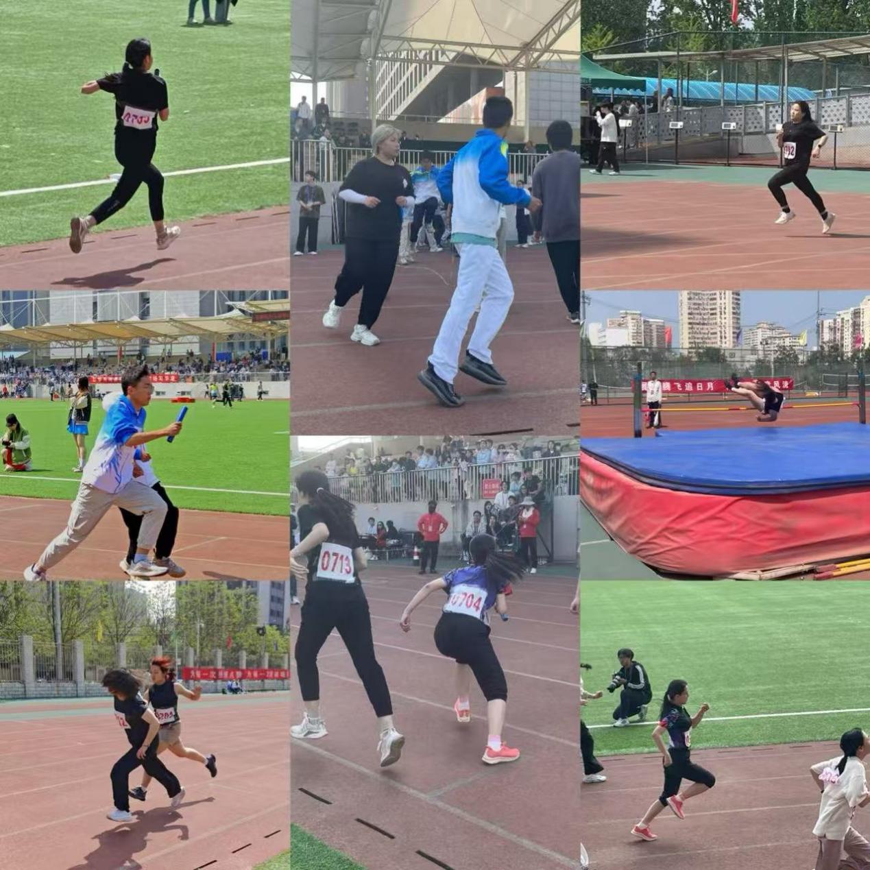 场边志愿者 赛场边是温情,看漫画 精心组织的“啦啦队”,为运动员们加油助威。同学们在看台上整齐的助威声,如同一曲激烈的乐章,为赛场增添了无限活力。此外,一些忙碌的身影穿梭在各个地方,他们是学院学生会、研会成员及主动担当志愿者的学生们,他们不辞辛苦地提供着各种保障服务。 三、精彩瞬间,获得名为“超越”的勋章 在本次比赛中: 女子4 x 400米接力第 7 名:张佳悦 李乐乐 袁浩桐 吴梦瑶 女子跳高第 7 名:陈童 团体积分第 8 名