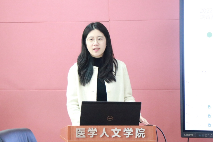王君书记为本次分享会致辞。她指出青年教师是未来的医学教育科研的中坚力量,学院及学校高度重视青年教师培养,学校会由工会牵头,学校教务处和相关教育教学单位协助,举办青年教师基本功比赛。学校开展青年教师基本功比赛工作的初衷是:一方面为了更好地提高教师的教学成效。另外一个更重要的方面是为了促进教师不断地更新教育教学理念,既要跟上国家的教育发展,还要能够跟国际接轨。她认为毕业生最终能够在本行业起到引领作用,需要具备三个特质:第一是具有自主性和较强的行动力。第二是对自己的研究领域具有浓厚的兴趣。第三是有韧性、能够长期的坚持。这三个特质都离不开老师在对于学生的启发和培养。她希望学院老师能够密切关注学校及国家的教育方向,注重创新型医学人才的培养,在讲台上不仅只是传递学科的专业能力和专业知识,更需要培养他的人文精神。也能通过青年教师基本功比赛这个平台,体现出学院良好的院风和优良的传统,展现教师对学生人文精神、人文素养的培养。 随后,陈欣怡老师从参赛教师层面做了参加比赛的心得分享。刘娟老师从团队如何指导和支撑帮助青年教师参加比赛的角度分享了经验。