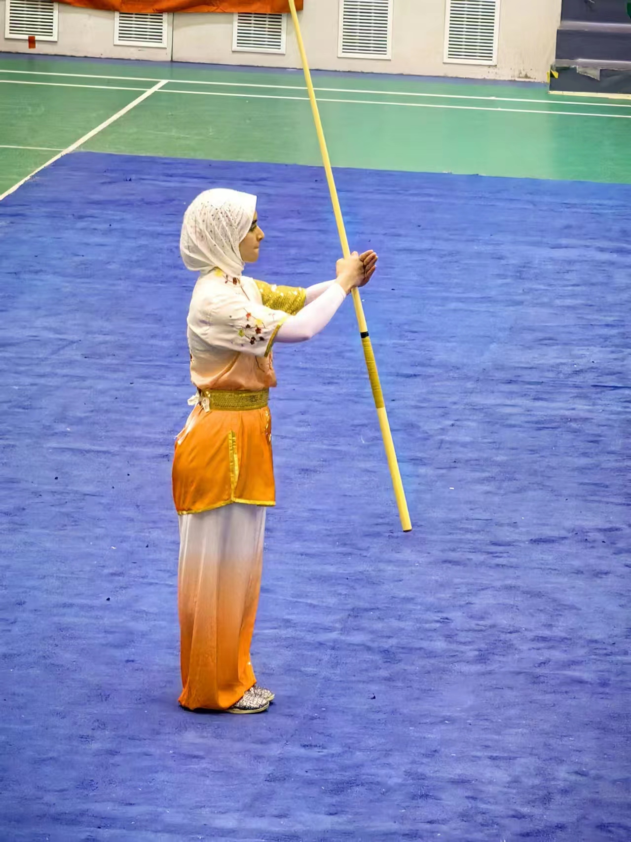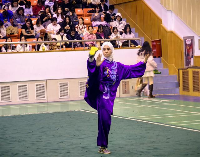 赛场上,武术的韵味被一群身姿矫健的运动员演绎得生动非凡,他们如同疾风中的精灵,每一个动作都蕴含着生命的灵动。满腔热忱与超凡技艺的结合,让这些运动员无论是使用刀剑枪戟,还是施展拳脚肘膝,都能展现出武术的深邃与精妙,令人叹为观止。教练的身影在赛场上同样引人注目,她时刻陪伴在队员身旁,用鼓励与支持为运动员注入源源不断的动力。而本次比赛的项目设置,更是让人眼前一亮:从传统的武术套路到各类器械展示,再到鼓励大学生发挥创意的个人特色表演,每一环节都充满了新意与活力。这样的比赛不仅为观众提供了一场视觉盛宴,让更多人领略到了中华武术的魅力所在;更为武术的传承与发展注入了新的动力,让这一古老文化在新时代焕发出更加璀璨的光芒。