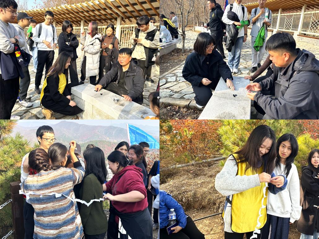 秋韵满途,收获满怀。夕阳西下,培训活动接近尾声,金玲玲老师总结道:“本次观赏红叶之旅到此结束了,学院组织此次学生骨干素质拓展培训,一是让同学们在学习工作之余放松身心,二是为不同年级同学创造轻松的交流环境,通过活动加深感情,为回校后工作学习中的沟通协作铺垫基础,三是希望同学们延续活动中结下的深厚友谊,并将这份融洽氛围带入学院各项工作。”金老师还对同学们在活动中展现出的积极向上、团结协作的精神给予高度肯定,并鼓励大家将此次团建活动中凝聚的力量、领悟的方法运用到今后的学习和工作中,以更饱满的热情、更务实的作风、更团结的姿态,共同推动学院班团建设工作再上新台阶。