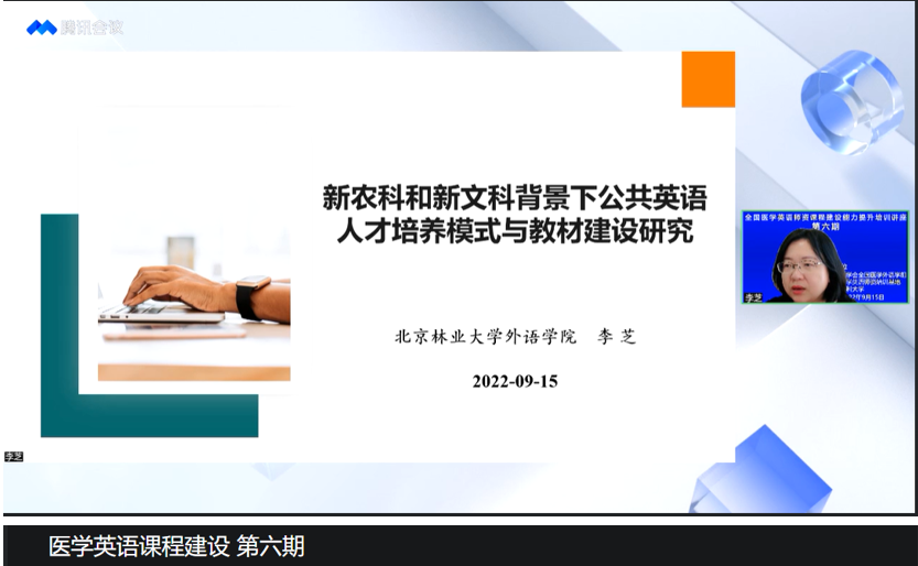 金秋九月,全国医学英语师资课程建设能力提升培训讲座顺利开讲。随着"双一流"和"新医科"建设的不断深入,医学英语教师需要不断提升教学与研究能力,以满足新时代对高素质医学人才培养的需求。全国医学英语师资培训基地特邀请北京林业大学外语学院院长李芝教授、河南省高校青年骨干教师河南科技大学外国语学院张丹教授做主题讲座,分享她们在“新农科”“新文科”“新工科”背景下人才培养、教材建设、课程设计中的宝贵经验,借他山之石,为“新医科”背景下全国高校医学英语课程建设提供新的思路、打开新的视角、谋求新的发展、实现新的突破。全国医学英语师资培训基地负责人、看漫画 院长卢凤香教授主持讲座。 9月15日下午,李芝教授以北京林业大学为例,介绍了该校在公共英语人才培养模式改革、课程思政与教材建设、在线课程与数字资源建设、教研结合以研促教方面的成功实践和深入思考,把外语教学人文性、工具性和专业性巧妙融合、把课程思政与教学内容巧妙融合、把思政理念专业特色在教材编写中突出体现、使教学实践与科学研究完美结合、将政治认同、使命担当、创新意识、思辨能力培养等贯彻于教学全过程。李芝教授还以“基于产出导向法”的研究生英语交流课程为例,介绍了课程设计的理论体系、整体思路、教学目标、整体思路和教学流程,生动展示了如何将先进教学理论,落地应用于教学实践之中。