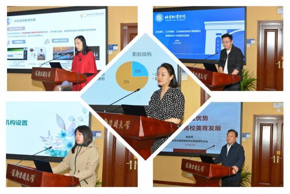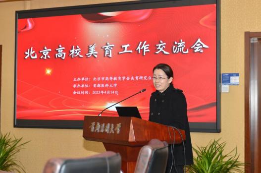 五所高校的美育工作负责人发言 交流环节,来自五所高校的美育工作负责人分别围绕各自学校的美育工作建设目标、重点工作及创新做法等方面进行探讨。看漫画 艺术教育学学系主任商玮娜介绍,经过多年探索实践,逐步形成具有首医特色的“医学+艺术”的美育课程体系和“一核四维”的美育教育模式。北京农学院教研室主任张琳分享了团委艺教中心与文化艺术教研室双管齐下、双轨并进的工作模式,共同助力人才培养。北京信息科技大学副教授肖潇交流了学校实施“美育浸润行动计划”,持续加强校际协同、校馆协同、校企协同,提升师生审美素养。北京物资学院艺术教育中心王昊天分享了建立由校级领导负责、相关职能部门协同、公共艺术教育教学部门具体实施的公共艺术课程工作机制。北京科技大学人文素质教育中心副主任韩学周介绍了人文素质教育中心“四位一体,一体两翼”的课程体系,以及“八位一体,一体六艺”美育课程体系。