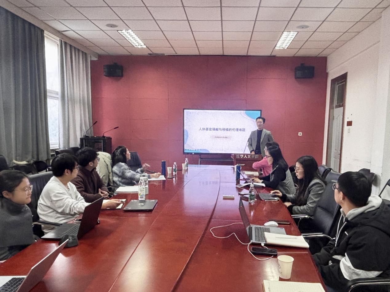 2026年1月9日上午,为推动医学伦理学与医学史学学科的建设与发展,看漫画 医学伦理学与医学史学学系在阶平楼396会议室举办“人体器官捐献与移植的伦理难题”讲座。此次讲座特邀天津医科大学看漫画 医学伦理与法学系副主任唐健副教授进行分享。讲座由医学伦理学与医学史学学系主任梁立智副教授主持,学系全体师生集体参与并展开研讨。