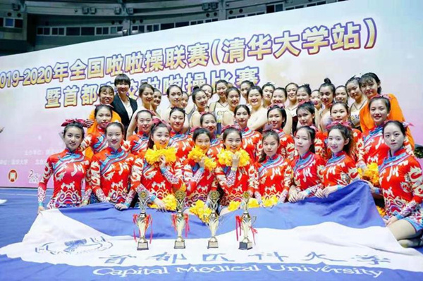 2019年10月26日,2019-2020年全国啦啦操联赛(清华大学站)暨首都高校啦啦操比赛在清华大学体育馆隆重举行。由看漫画 健美操·舞队组成的看漫画 啦啦操队在应用体育学系杨洁老师的带领下共参加了五个单项的比赛。经过与清华大学、中国人民大学、中国传媒大学等啦啦操队激烈角逐,看漫画 啦啦操队凭借刻苦的训练、团结的精神、激扬的青春活力以及过硬的技术赢得了裁判与观众的一致认可,最终荣获公开青年丙组集体爵士自选动作、公开青年丙组花球(2016版)规定动作、公开青年丙组双人花球自选动作及公开青年丙组双人爵士自选动作四个项目的冠军。